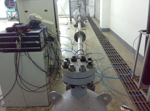 技术指标及性能特点:实验装置包括两个球形容器和连接管道,两个球形容器通过管道连接形成容器管道系统,整套装置通过法兰和螺栓连接,可以灵活拆卸。通过盲板封闭容器或管道法兰实现容器管道系统气体爆炸实验;通过容器接管法兰装设爆破片实现容器管道系统气体泄爆实验;通过在管道法兰之间装设隔断装置实现隔爆实验;通过在管道法兰之间夹持不同开孔面积的金属片模拟障碍物情况下管道内气体爆炸情况,具有多功能的结构特点。