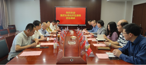 近日,重庆长寿经开区管委会副主任程学明、经贸局副局长朱宁、应急局局长蒋轩、创新中心主任周莉萍、经贸局招商四局副局长余莹莹等一行9人来伟德官方网站开展交流活动。伟德官方网站领导班子和员工代表参加会议,会议由伟德官方网站院长助理张明广主持。