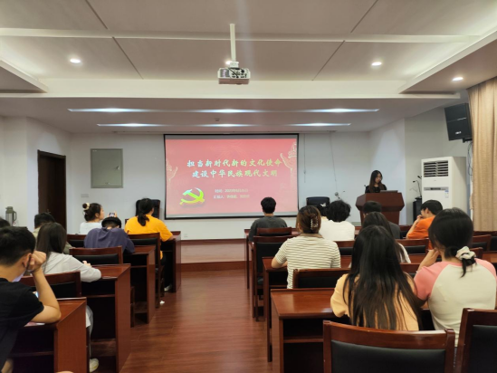 学习会以“担当新时代新的文化使命,建设中华民族现代文明”为主题。许佳妮,刘亚群两位同学领学习近平总书记在文化传承发展座谈会上的重要讲话,让同学们全面深入了解中华文明的历史,深刻认识中华文明的突出特性,领悟“第二个结合”的重大意义,意识到守正创新对更好地传承中华优秀传统文化的重要性。