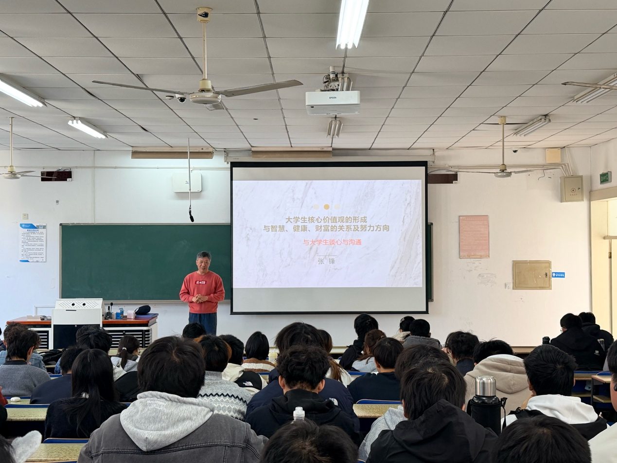 张锋老师以“大学生核心价值观的形成与智慧、健康、财富的关系及努力方向”为题,为同学们带来了一场内容丰富、启迪深刻的讲座。他生动阐述了核心价值观作为人生成长“总开关”的核心要义,并深入剖析了其对大学生智慧积累、身心健康维护和财富观塑造的引领作用,让抽象理论落地生根,使价值理念入脑入心。讲座中,张老师鼓励同学们要以核心价值观为指引,科学规划大学生活,在勤学笃行中锤炼本领,不断实现个人素养与综合能力的全面提升,不负青春韶华与时代期许。